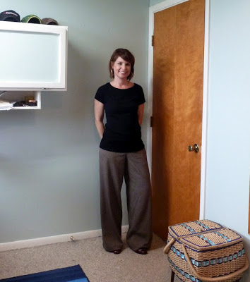 Colette Juniper. I love this style just not on me. They are a little too wide and a little to long. These two things are fixable. Not particularly happy with my fabric choice. It was a suiting fabric and the kind that shows off your panty and pocket lines. Gross. My plans are to bring in the inseam and shorten the length to see if I like them any better. If so I will make another pair with a more heavier weight fabric.